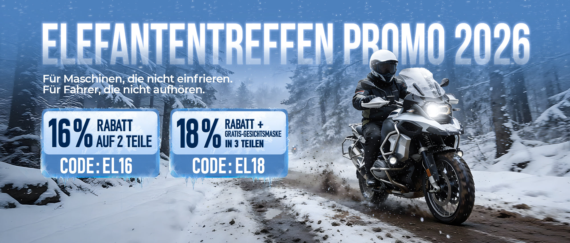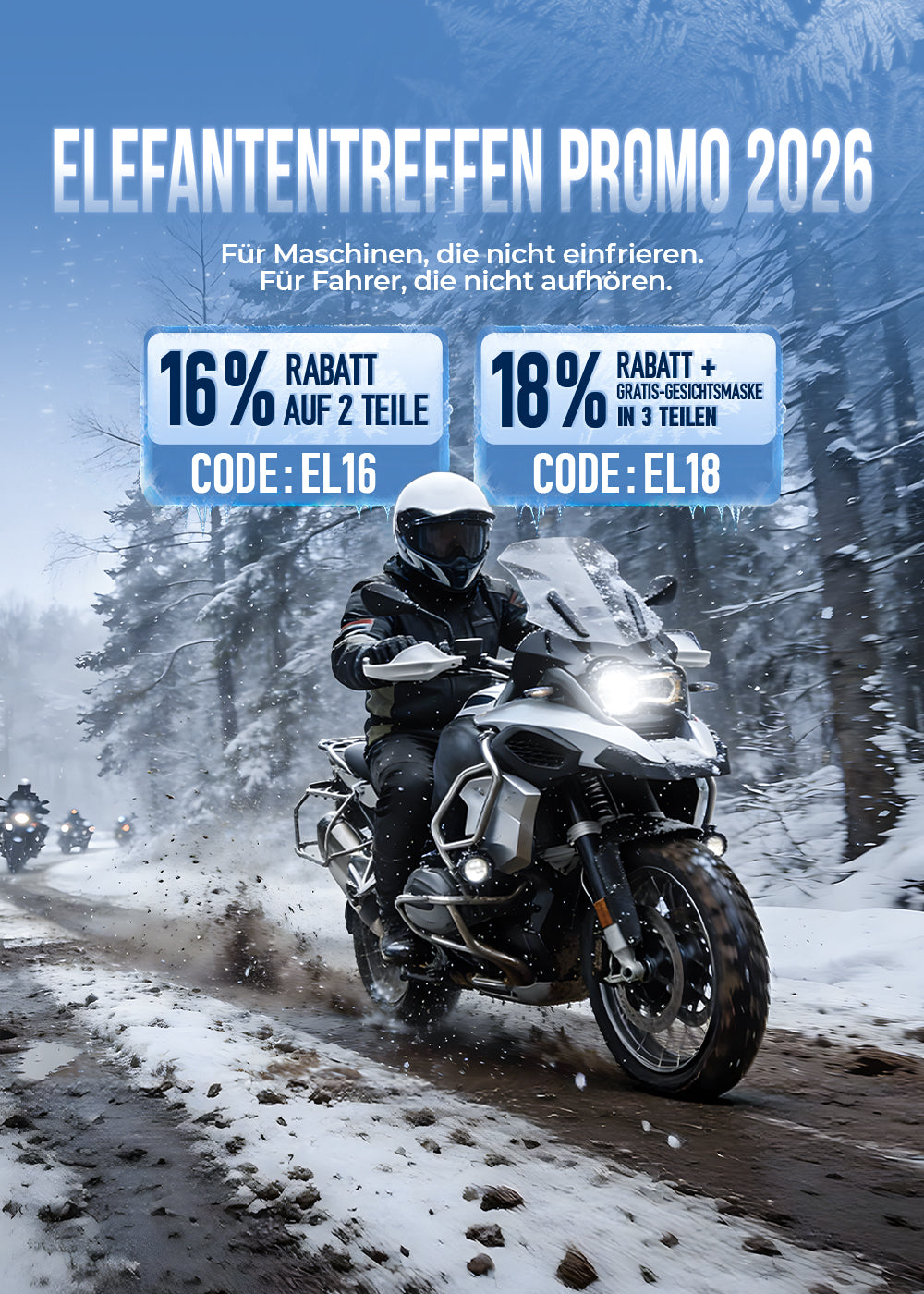 16 % Rabatt auf 2 Teile, 18 % Rabatt + kostenlose Ride-Maske bei 3 Teilen 🛒🛒Code: EL16/EL18